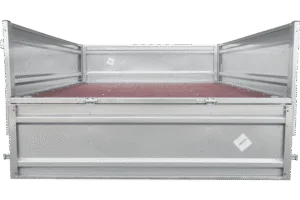 Matériaux de Construction : Plancher en contreplaqué antidérapant combiné à des côtés renforcés en acier pour une durabilité accrue et une meilleure résistance aux éléments.